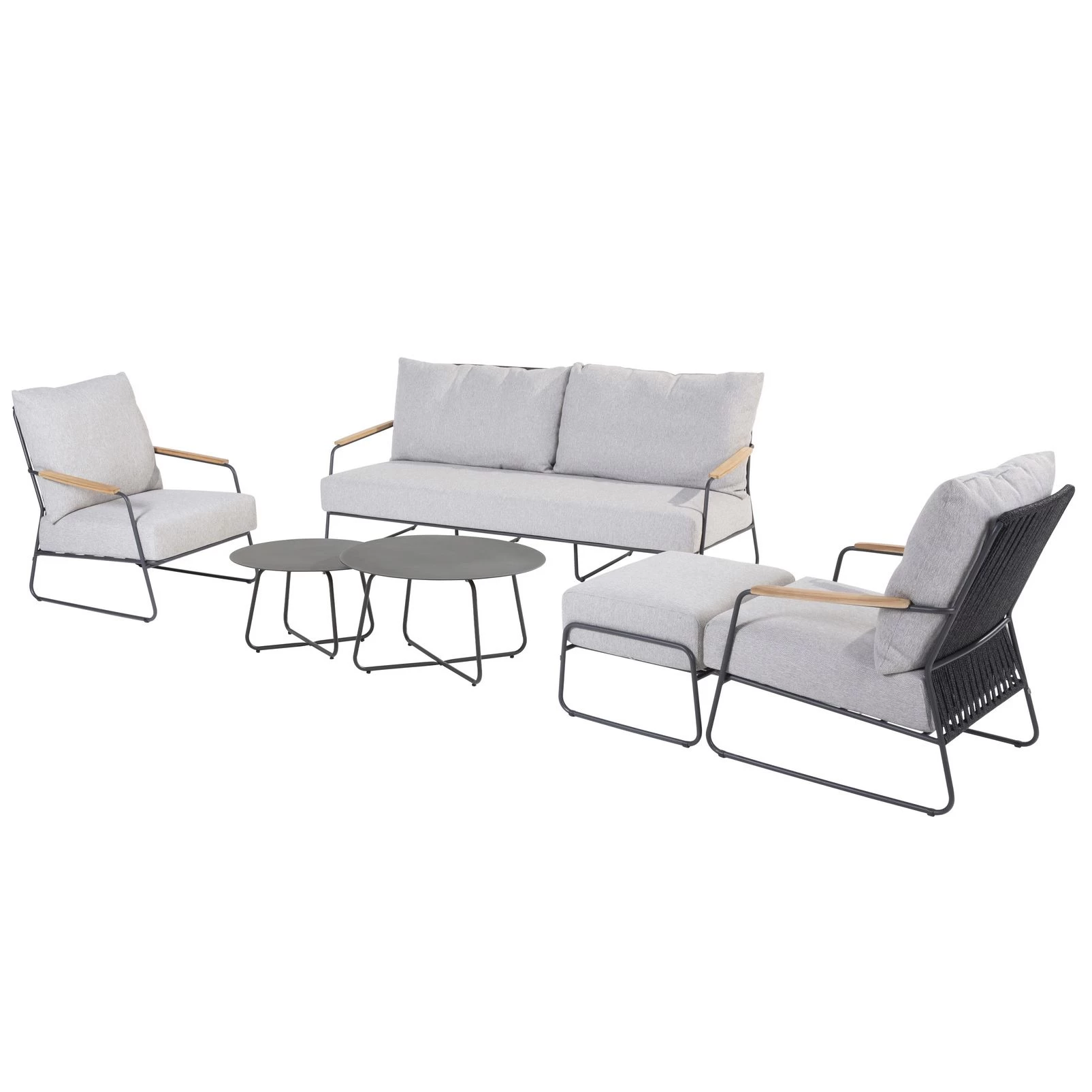 De 4 Seasons Outdoor Balade loungeset heeft een mooi, strak design. Deze loungeset bestaat uit een bank, twee loungestoelen, een hocker en twee kleine salontafels. De rug- en zitkussen worden meegeleverd en deze zijn gemaakt van een weerbestendige materiaal. Het frame voelt licht en de bekleding is gemaakt van gedraaid kunststof, ook wel Cord genoemd. Deze loungeset is perfect om in te chillen en er passen totaal 4 mensen op.