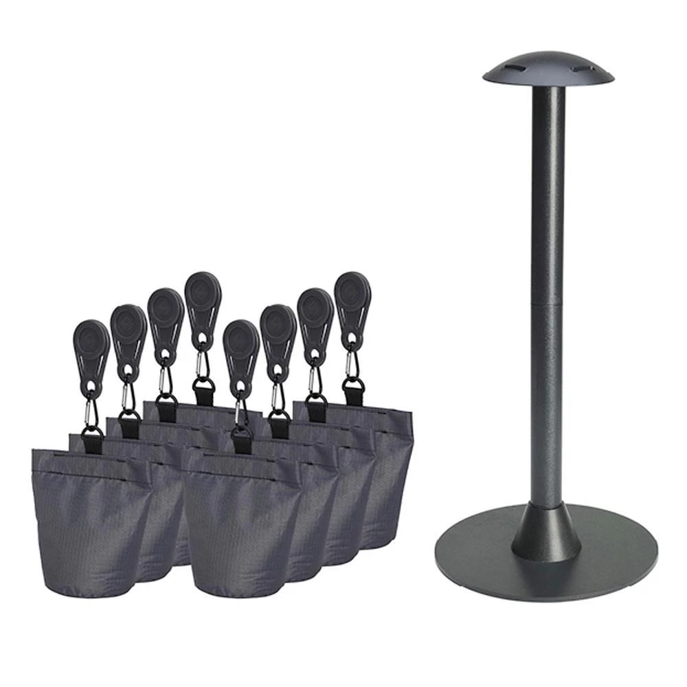 De AeroCover Hoessteunset bestaat uit acht zandzakjes en een in hoogte verstelbare hoessteun van maximaal 50 centimeter hoog. De hoessteun wordt onder een tuin- of loungemeubelhoes geplaatst waardoor ophoping van vuil en water wordt voorkomen. De 8 zandzakjes die erbij geleverd worden kunnen aan de hoes worden bevestigd, door het extra gewicht dat aan de hoes hang wordt deze mooi op zijn plaats gehouden.