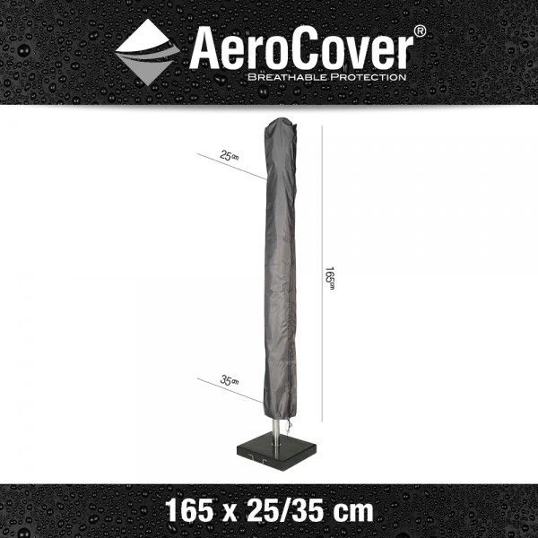 Deze AeroCover parasolhoes is ontwikkeld voor middenstok parasols, met een doek tot 3,0 meter diameter of tot 2,25 x 2,25 meter. De parasolhoes zelf is 165 centimeter hoog en 25/35 centimeter breed.