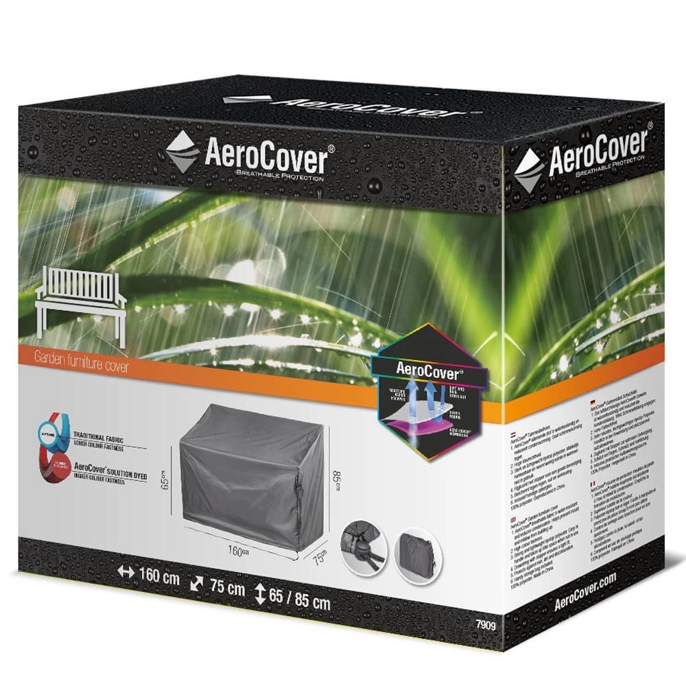 De AeroCover tuinmeubelhoes voor tuinbanken is geschikt voor banken tot 160 centimeter met een hoogte tussen de 65 en 85 centimeter. Zoals we van AeroCover gewend zijn is ook deze hoes gemaakt van sterk en lichtgewicht ripstop polyester met een waterdicht en ademend membraan. Hierdoor wordt het condens, wat ontstaat door temperatuurverschillen, direct naar buiten toe getransporteerd, waardoor schimmelvorming wordt tegengegaan. De AeroCover afdekhoes voorzien van een rijgkoord met twee stoppers voor een goede pasvorm en wordt geleverd met een opbergtas.