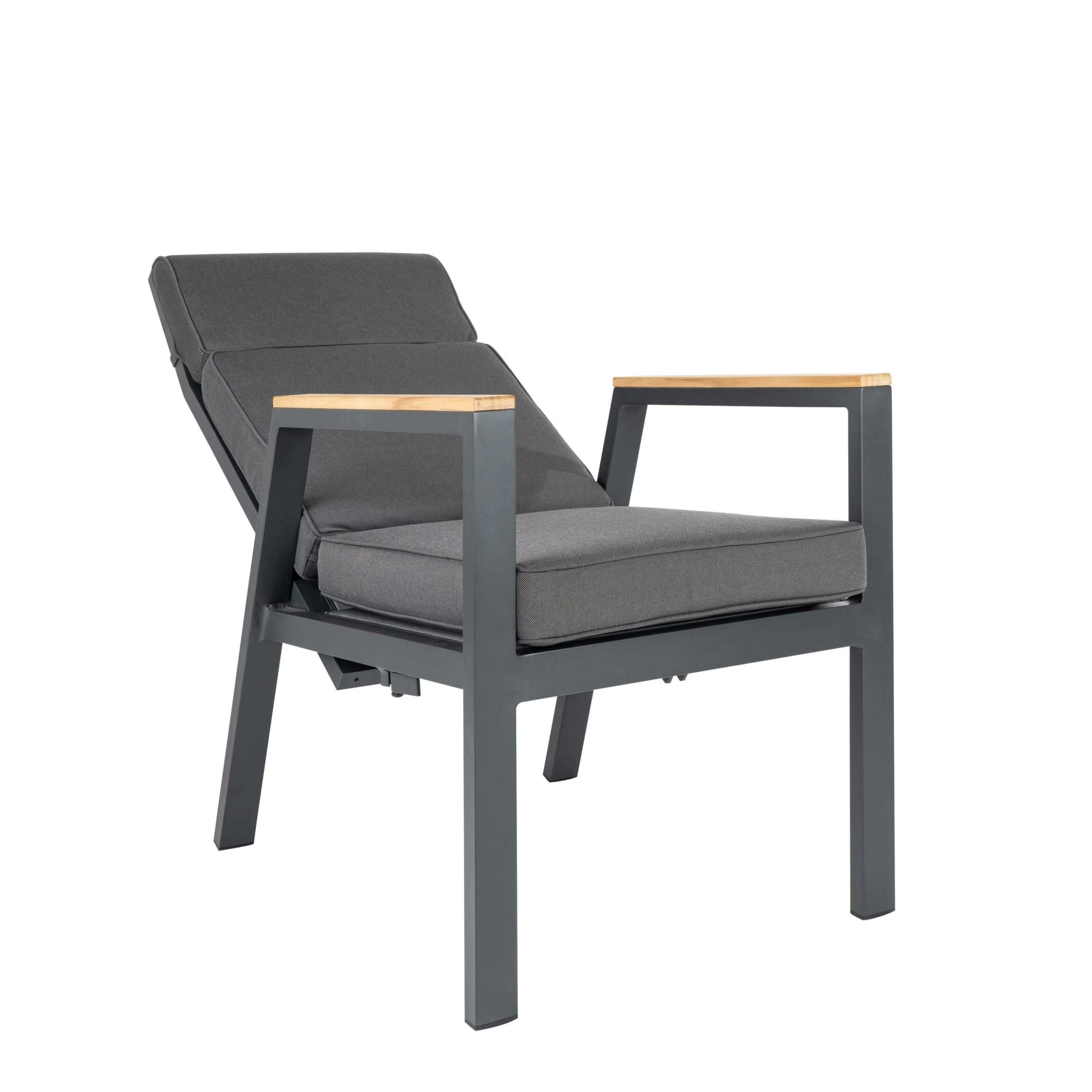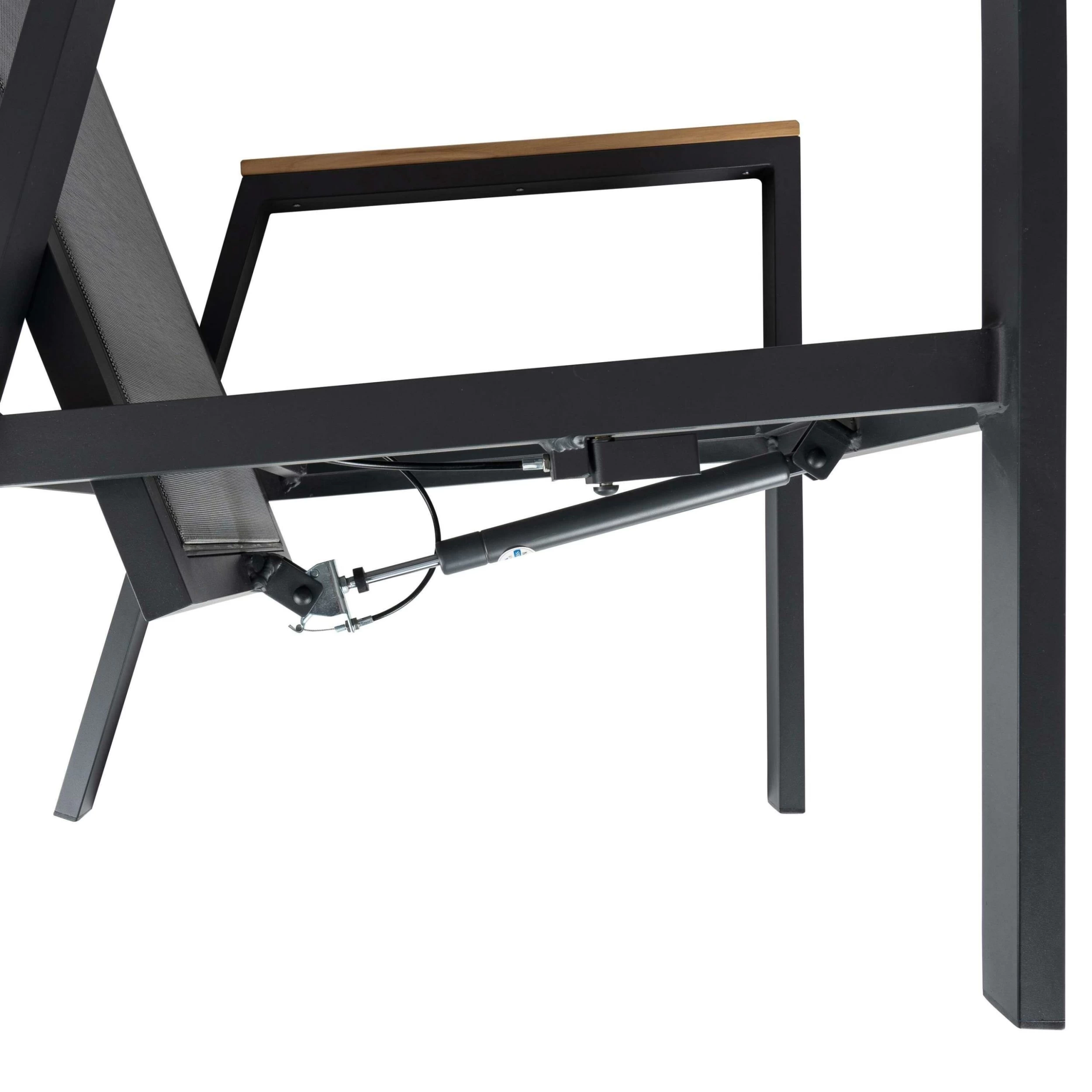De Bardani Quinta XL verstelbare tuinstoel heeft een stevig aluminium frame met armleuningen van teak hout. De tuinstoel is verstelbaar door middel van een gasveer aan de onderkant van de stoel. De stoel wordt geleverd inclusief rug- en zitkussen.
