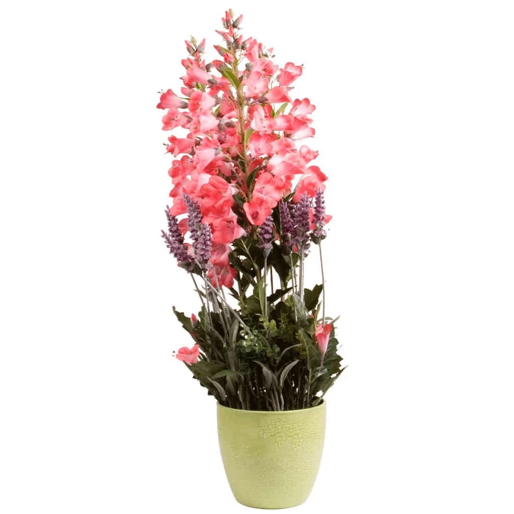 Een Penstemon mooi laten bloeien valt niet mee. De Penstemon komt oorspronkelijk uit Noord-Amerika en gedijt het beste in kleigrond. De plant groeit en bloeit het eerste jaar in de Nederlandse tuin vaak goed, maar heeft nogal eens moeite om de harde winters te overleven. Met de Penstemon kunstplant heeft u daar geen last van, zowel binnen als buiten staat de Penstemon er het hele jaar mooi bij.