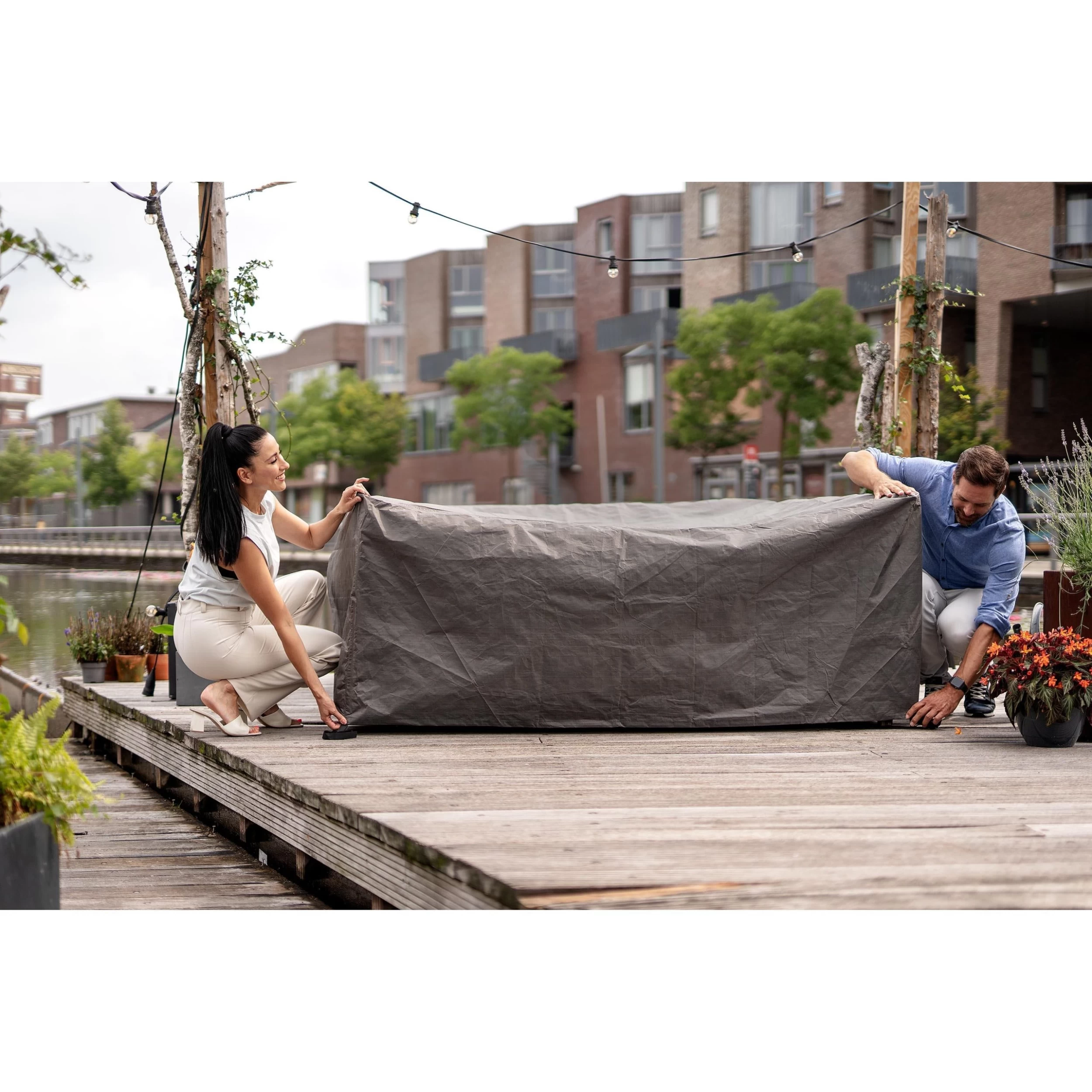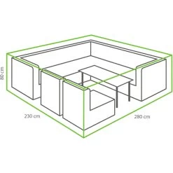 Deze beschermhoes van Winza Outdoor Covers is geschikt voor een lounge set van maximaal 280 bij 230 bij 80 centimeter. De hoes is gemaakt van een luxe PP textiel dat waterdicht is (ook de naden) en daarnaast ook bestemd is tegen zonlicht. Uw tuinset is optimaal beschermd tegen de weersinvloeden zoals vorst en sneeuw. Door middel van klittenband kunt u de hoes aan uw tuinmeubel vastmaken. Bedek alleen uw droge loungeset in verband met vochtschade.