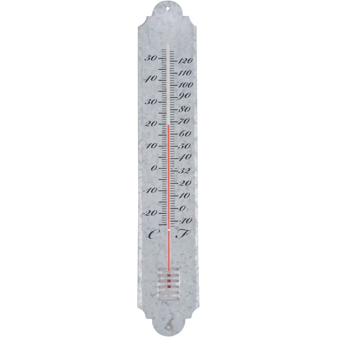 Op de Thermometer van oud zink van Esschert Design leest u makkelijk de temperatuur af in Celsius en Fahrenheit.