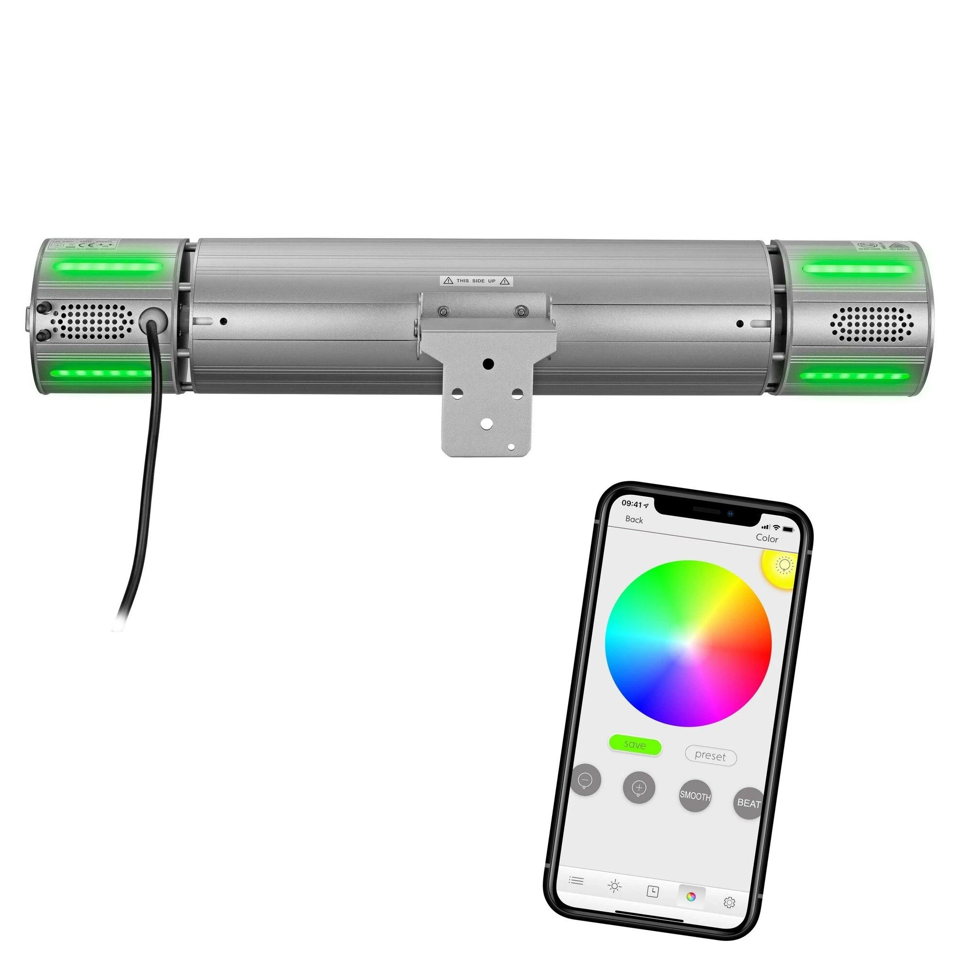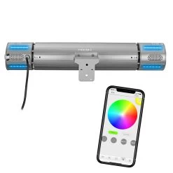 Het bedienen van deze terrasverwarmer is zeer eenvoudig. Dit kan met de afstandsbediening, maar Eurom heeft ook een speciale app ontwikkeld, geschikt voor iOS en Android. Deze app maakt het mogelijk om uw muziek af te spelen via de geluidsboxen, die zich aan weerszijden van de terrasverwarmer bevinden. Ook kunt u met de app de ledverlichting bedienen en de lichtkleur naar wens aanpassen. Deze Heat and Beat terrasverwarmer bevestigt u aan wand of plafond. Ideaal voor meer warmte en sfeer in uw tuin.