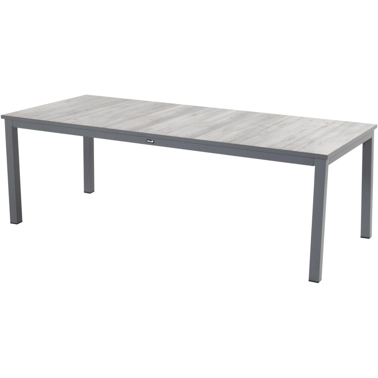 De Hartman Comino tuintafel heeft een afmeting van 223 x 101 x 75 centimeter. De tafel bestaat uit een onderstel van sterk aluminium en een keramisch tafelblad. Dankzij deze materialen kan de tafel met een beetje onderhoud gedurende het jaar buiten blijven staan.