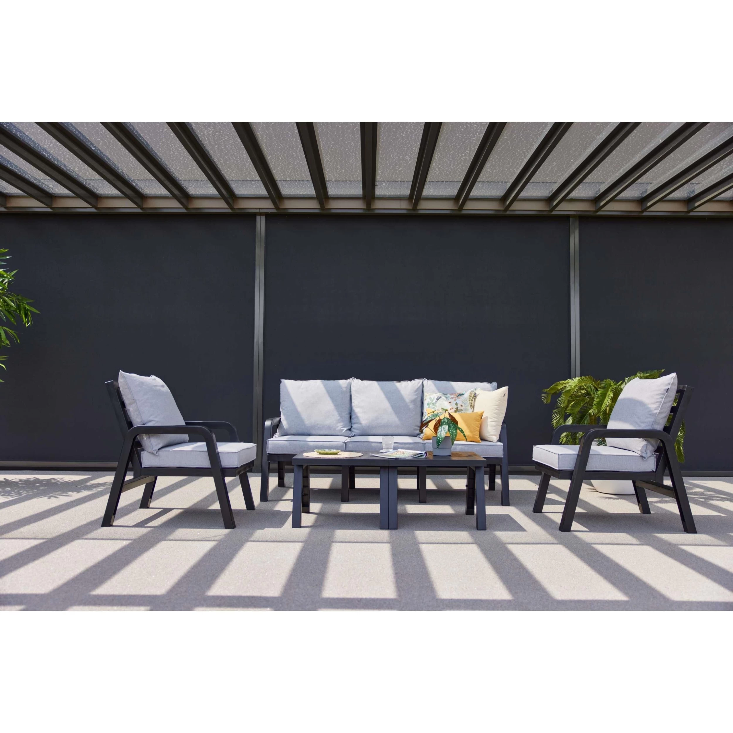 De Hartman Ibiza loungeset is een comfortabele loungeset gemaakt van duurzame materialen. De set is licht van gewicht en kan dus makkelijk worden verplaatst. Het frame is onderhoudsarm en kan altijd buiten blijven staan. De kussens zijn gemaakt van water- en vuilafstotend Olefin. Deze loungeset is een bouwpakket.