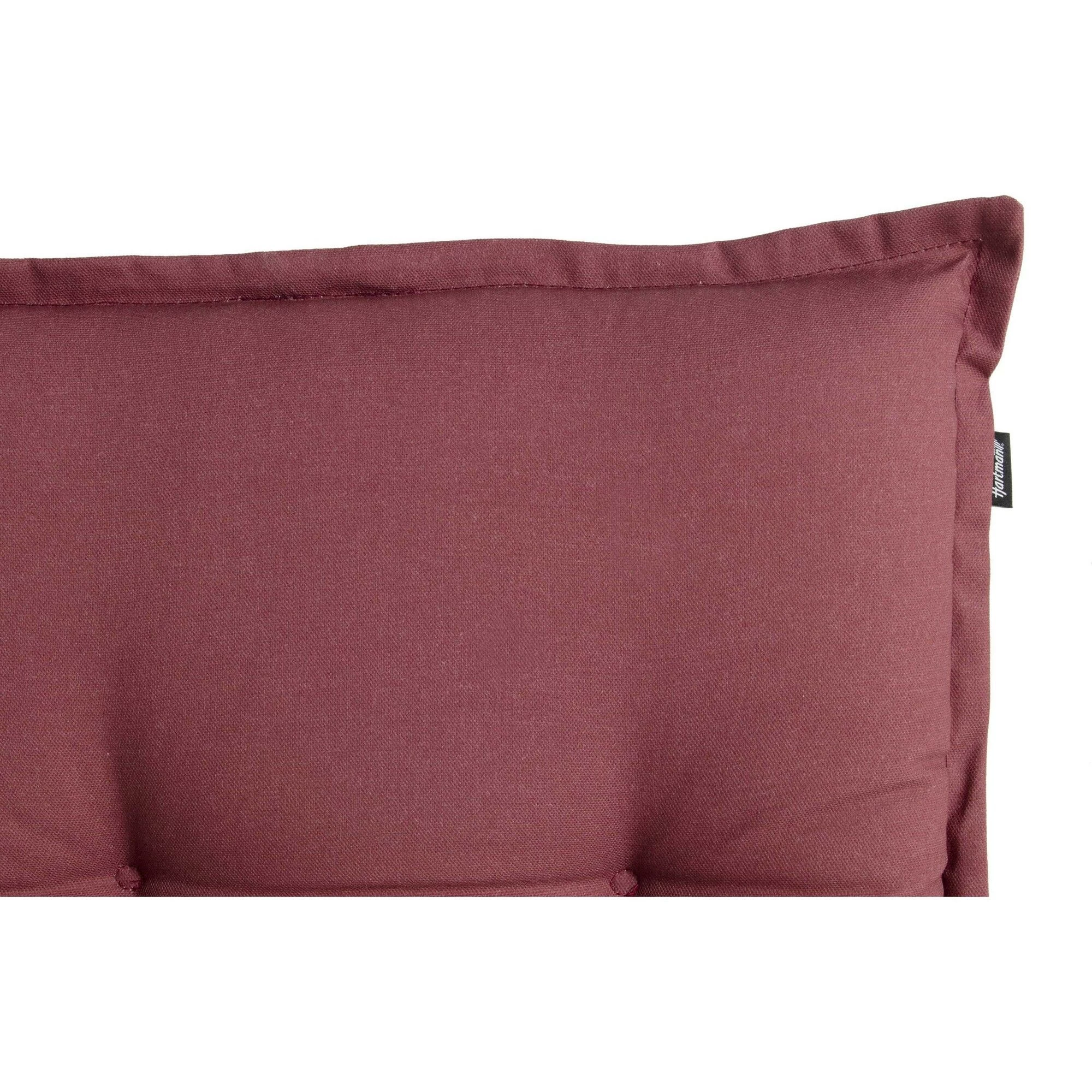 Het Hartman tuinkussen hoge rug in cuba cassis bestaat uit een ideale combinatie tussen katoen en polyester. Dit Hartman tuinkussen is met deze stofcombinatie zeer comfortabel en slijtvast. Dankzij de cuba cassis kleur heeft dit tuinkussen ook een warme uitstraling.