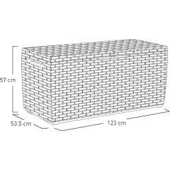 De Keter Capri opbergbox kan dienen als opbergplaats of als zitplaats. De deksel van de Keter opbergbox heeft namelijk een maximaal draagvermogen van 250 kg, waardoor deze twee personen kan dragen.