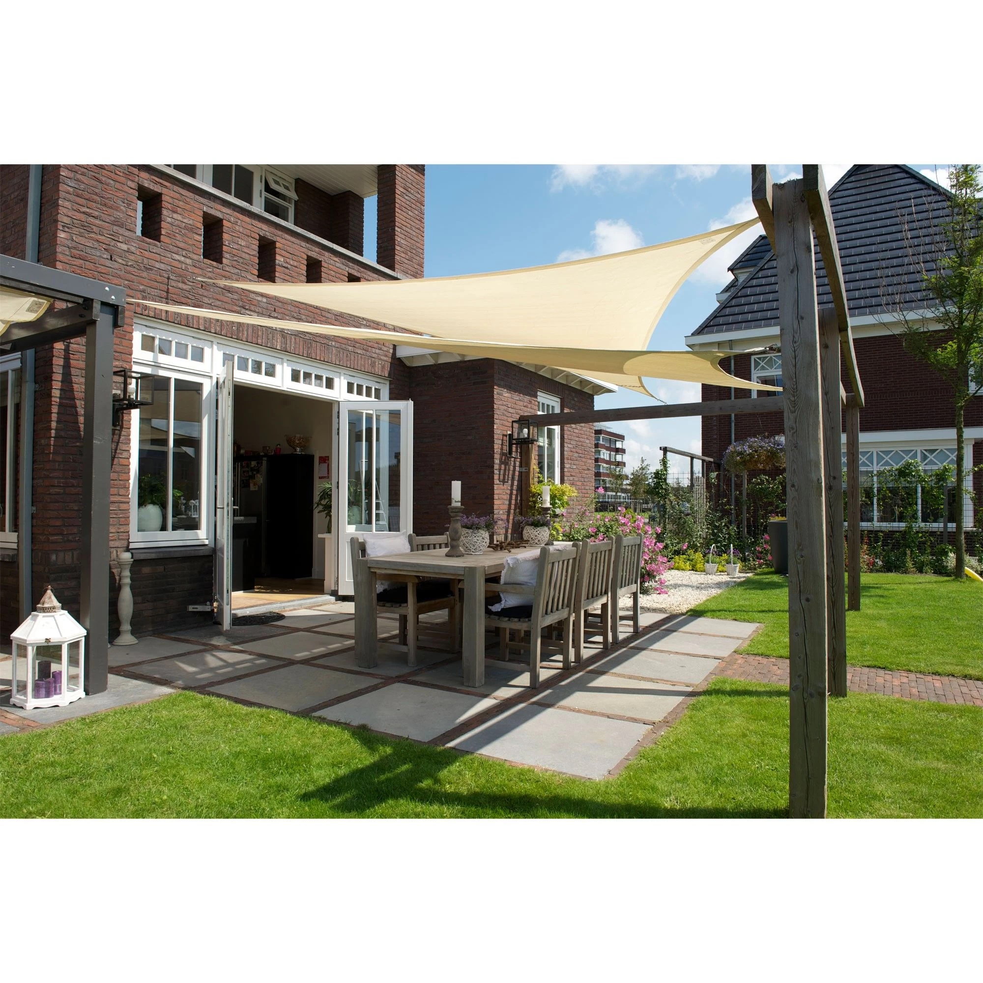 Het Coolfit driehoek schaduwdoek zorgt voor verkoeling in uw tuin. Het doek geeft schaduw waardoor u beschermd bent tegen 95% van de schadelijke uv-straling. Het schaduwdoek heeft een open structuur waardoor het langer kan blijven hangen, het is namelijk beter bestand tegen de harde wind. Dit schaduwdoek is gemaakt van hogedichtheidspolyetheen (HDPE). Het materiaal is makkelijk te reinigen. Ideaal om in uw tuin een comfortabele schaduwplek te creëren zonder dat een vervelende parasolvoet in de weg staat.