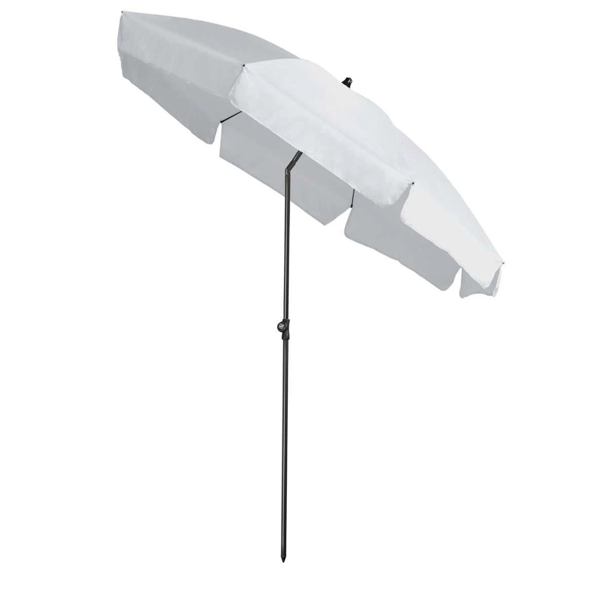 De Aruba volant parasol van Platinum heeft een diameter van 200 centimeter. Het klassiek en kantelbaar model parasol met 160 grams polyester doek in de kleur wit. De volant geeft extra schaduw bij een laagstaande zon. Kan ook als strandparasol worden gebruikt en rechtstreeks in de grond worden geprikt.