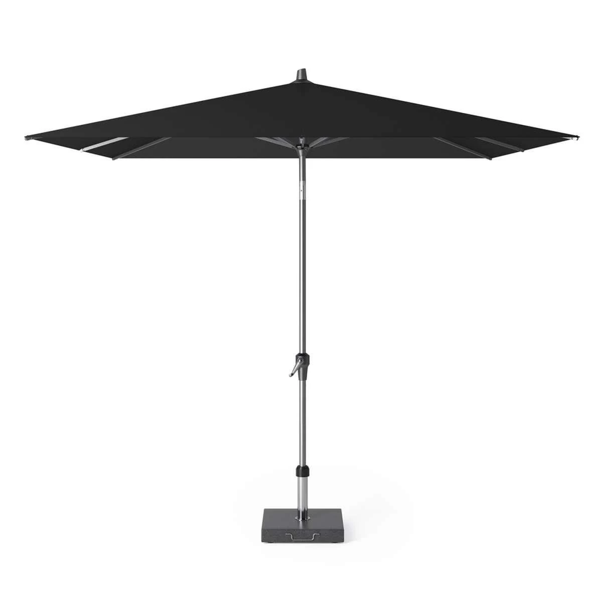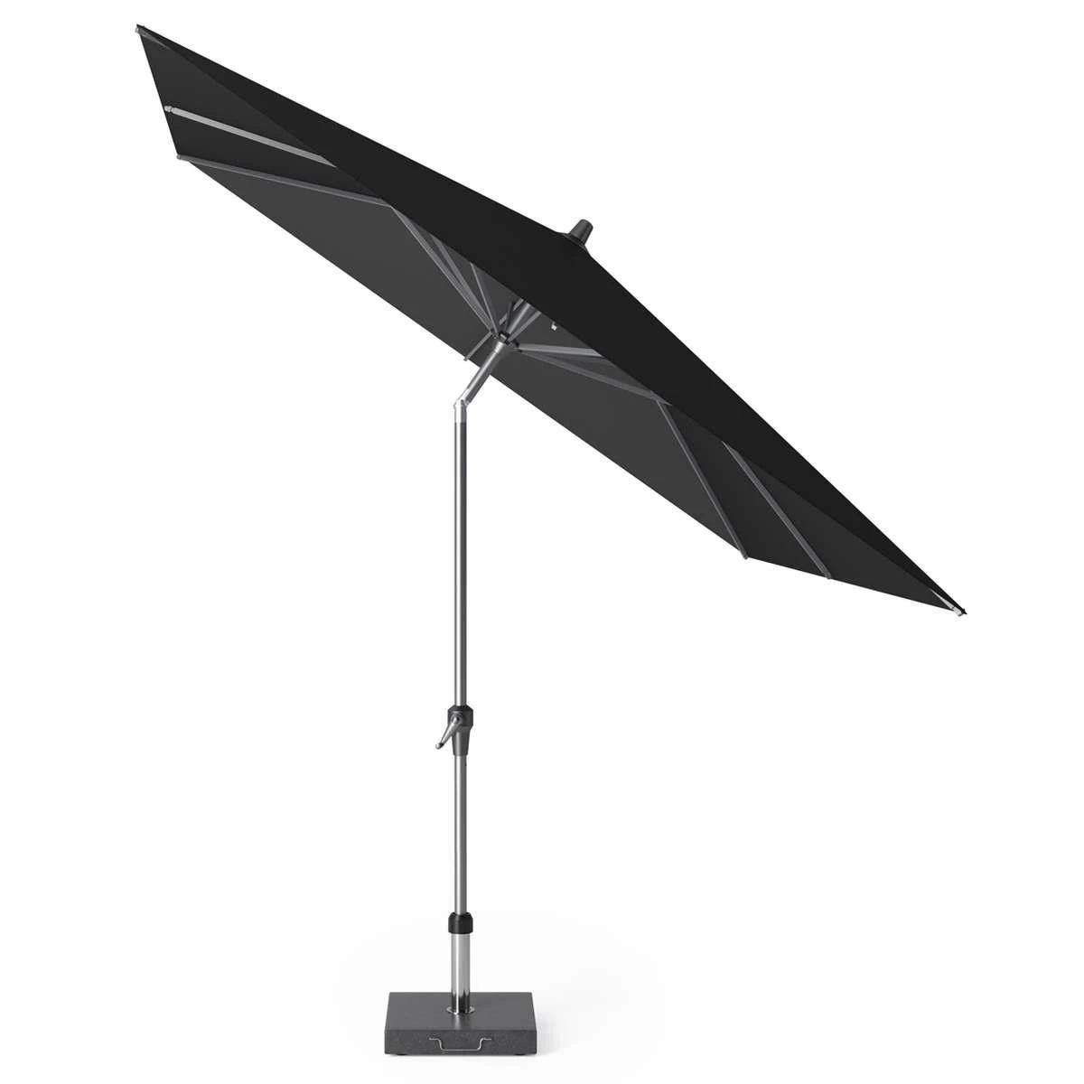 De Platinum Riva parasol heeft een afmeting van 250 x 250 centimeter. Deze moderne en strakke parasol is exclusief ontworpen door Platinum. De Riva parasol is voorzien van een easy-up opdraaimechanisme, doekspanners en een stevige, deelbare mast. De parasol is uitgevoerd met een 220 grams zwart polyester doek met waterafstotende coating. Met het kantelsysteem creëert u meer schaduw in uw tuin of op het balkon. Houd uw parasol als nieuw en dek deze alleen af met een AeroCover ademende parasolhoes wanneer u deze langere tijd niet gebruikt. De parasol wordt zonder voet geleverd. Wij adviseren deze parasol op een Rome 30kg parasolvoet van Platinum te plaatsen.