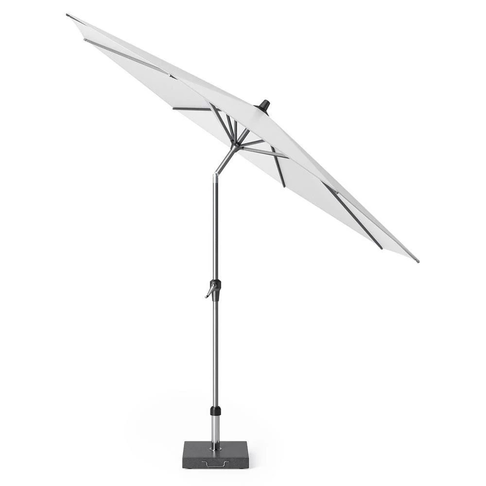 De Platinum Riva parasol 300 heeft een moderne, strakke uitstraling. Deze ronde Platinum parasol heeft een diameter van 3 meter en is uitgerust met een stevige deelbare mast, easy-up opdraaimechanisme en doekspanners voor een extra strakke uitstraling. Met het kantelsysteem creëert u altijd schaduw in uw tuin of op het balkon. Deze Riva parasol wordt geleverd exclusief parasolvoet, deze is optioneel verkrijgbaar. Een Platinum parasolvoet van ten minste 60 kilogram is een goede combinatie met deze parasol.