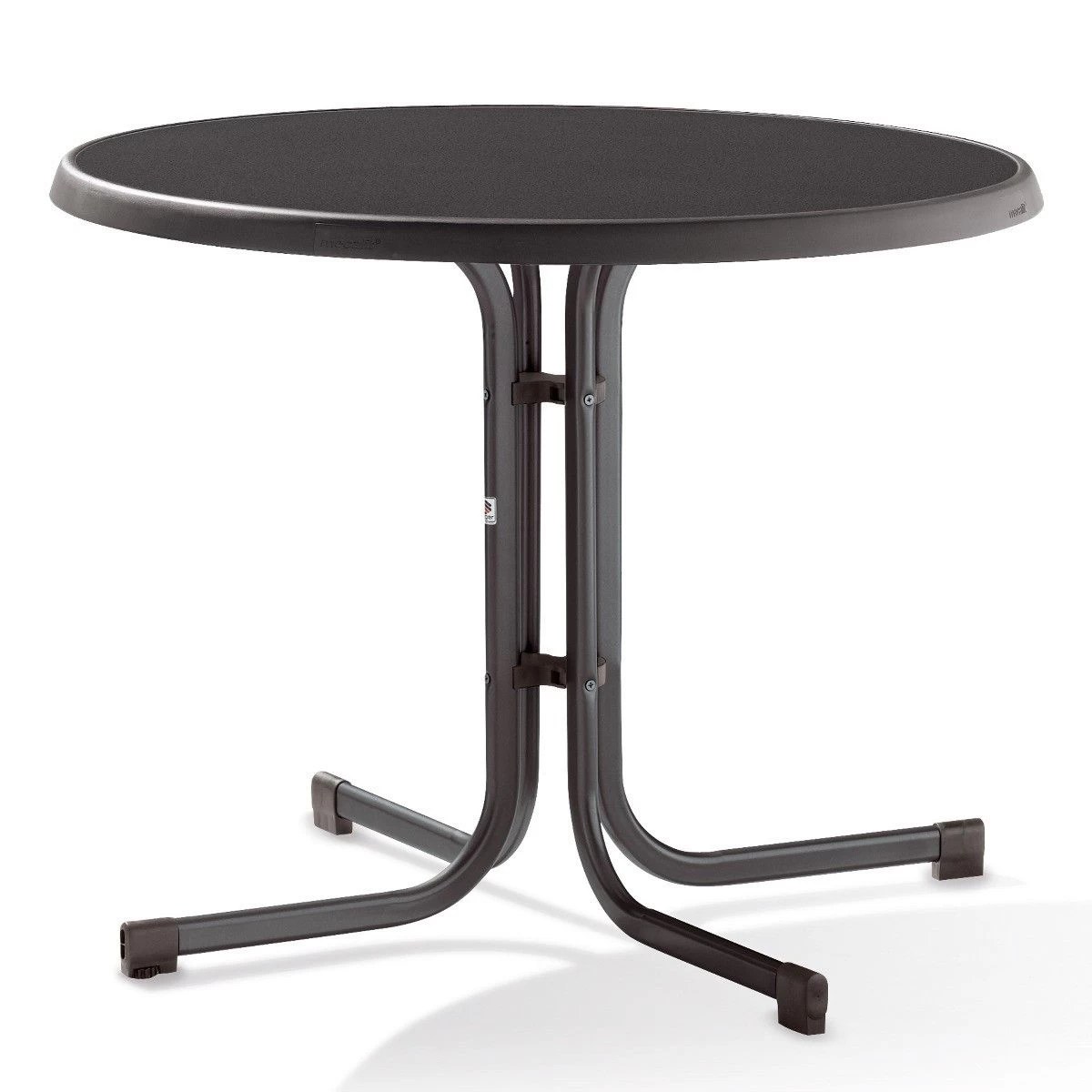Deze Sieger Boulevard tuintafel met een diameter van 86 centimeter is zeer duurzaam en gemakkelijk op te bergen door de tafel in te klappen.
