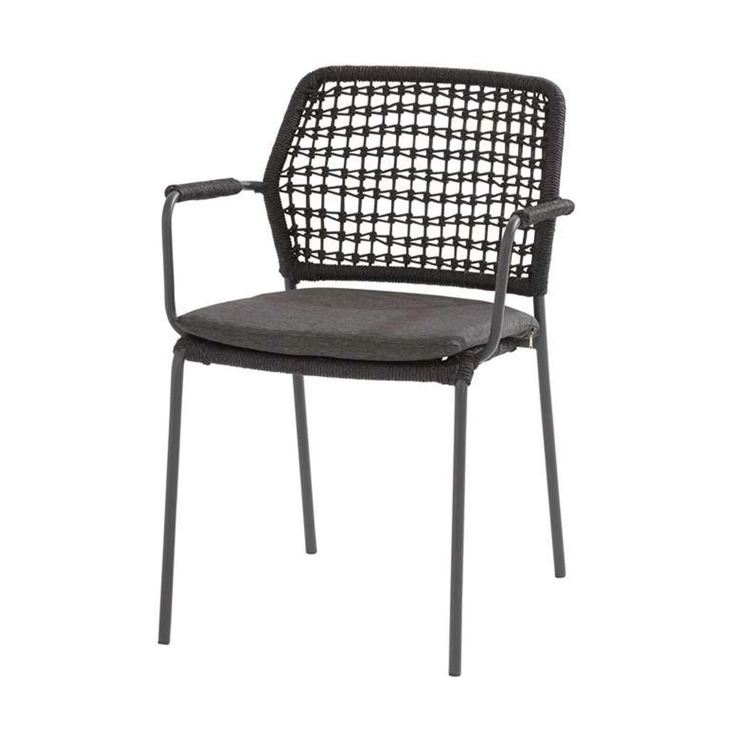 De Barista tuinstoel van TASTE by 4 Seasons is bekleed met handgevlochten rope. Het unieke patroon in de rugleuning zorgt voor een opvallende uitstraling. Het frame is gemaakt van stevig RVS. Hierdoor heeft het een lange levensduur en kan de stoel het hele jaar buiten blijven staan. Het meegeleverde zitkussen is weersbestendig.