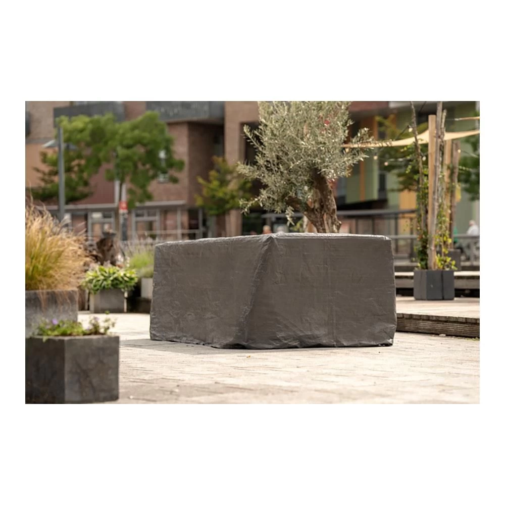 De Winza Outdoor Covers beschermhoes voor een tuintafel tot maximaal 300 centimeter. De afmeting van de hoes is 305 bij 110 bij 75 centimeter. De hoes is gemaakt van een luxe en duurzaam PP textiel met coating, in de kleur grijs. Verder is de cover is waterdicht (ook de naden), UV bestendig en kleurvast. Uw tuinset zal optimaal beschermd worden tegen de weersinvloeden. Let op: bedek alleen uw droge tafel, dit in verband met vochtschade.