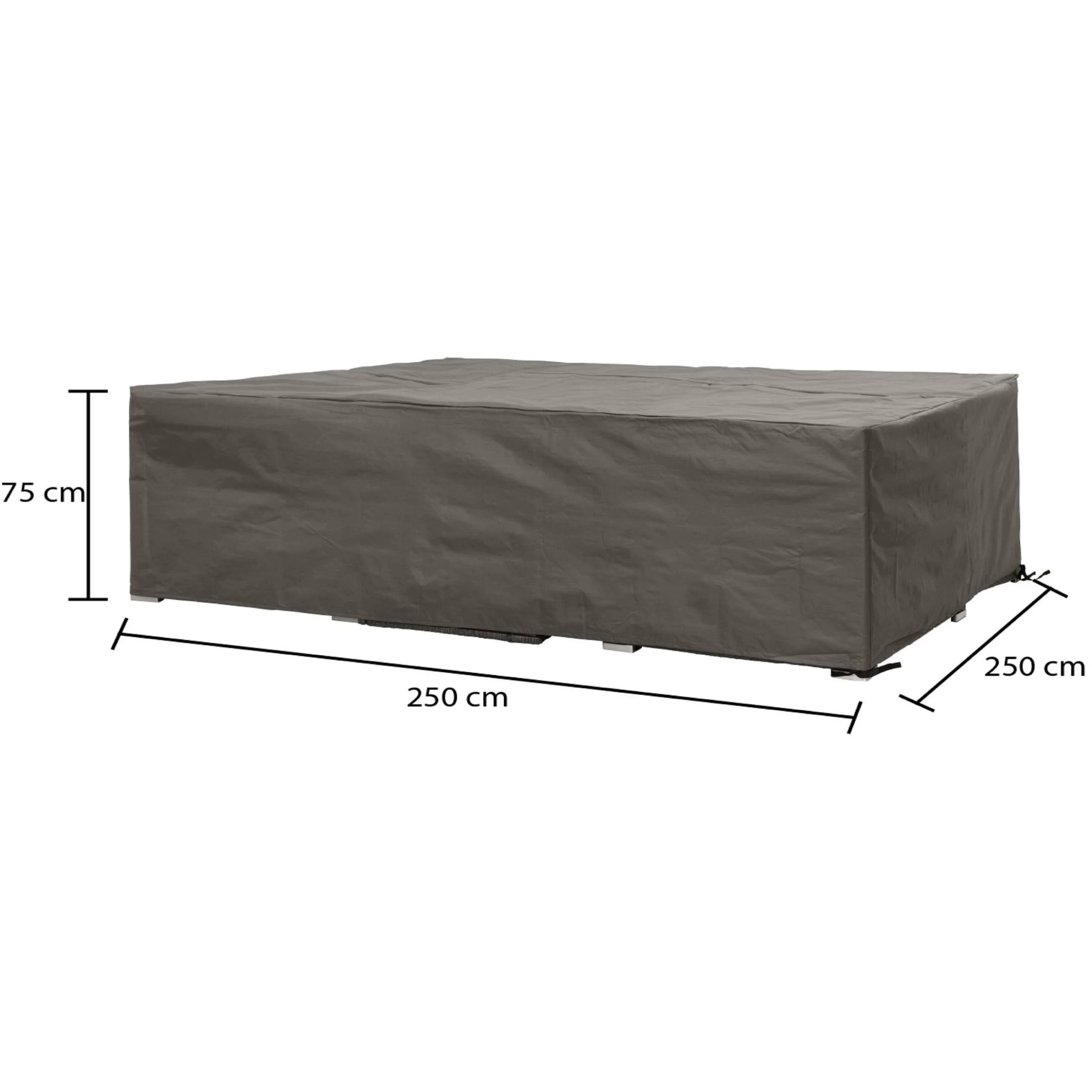 Deze Winza Outdoor Cover beschermhoes beschermt uw loungeset tegen water, vorst, zonlicht en vuil. De afmetingen van de hoes zijn 250 bij 250 bij 75 centimeter. De hoes is gemaakt van een duurzaam PP textiel en is waterdicht (ook de naden), UV bestendig en kleurvast. De hoes beschermt uw tuinset optimaal tegen de weersinvloeden. Door middel van klittenband kunt u de hoes aan uw tuinmeubel vastmaken. Let op: bedek alleen uw droge loungeset en berg uw kussens binnen op, dit in verband met vochtschade.
