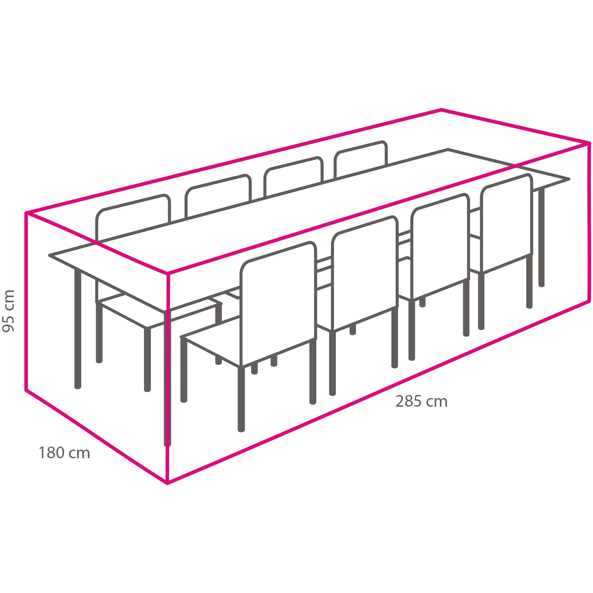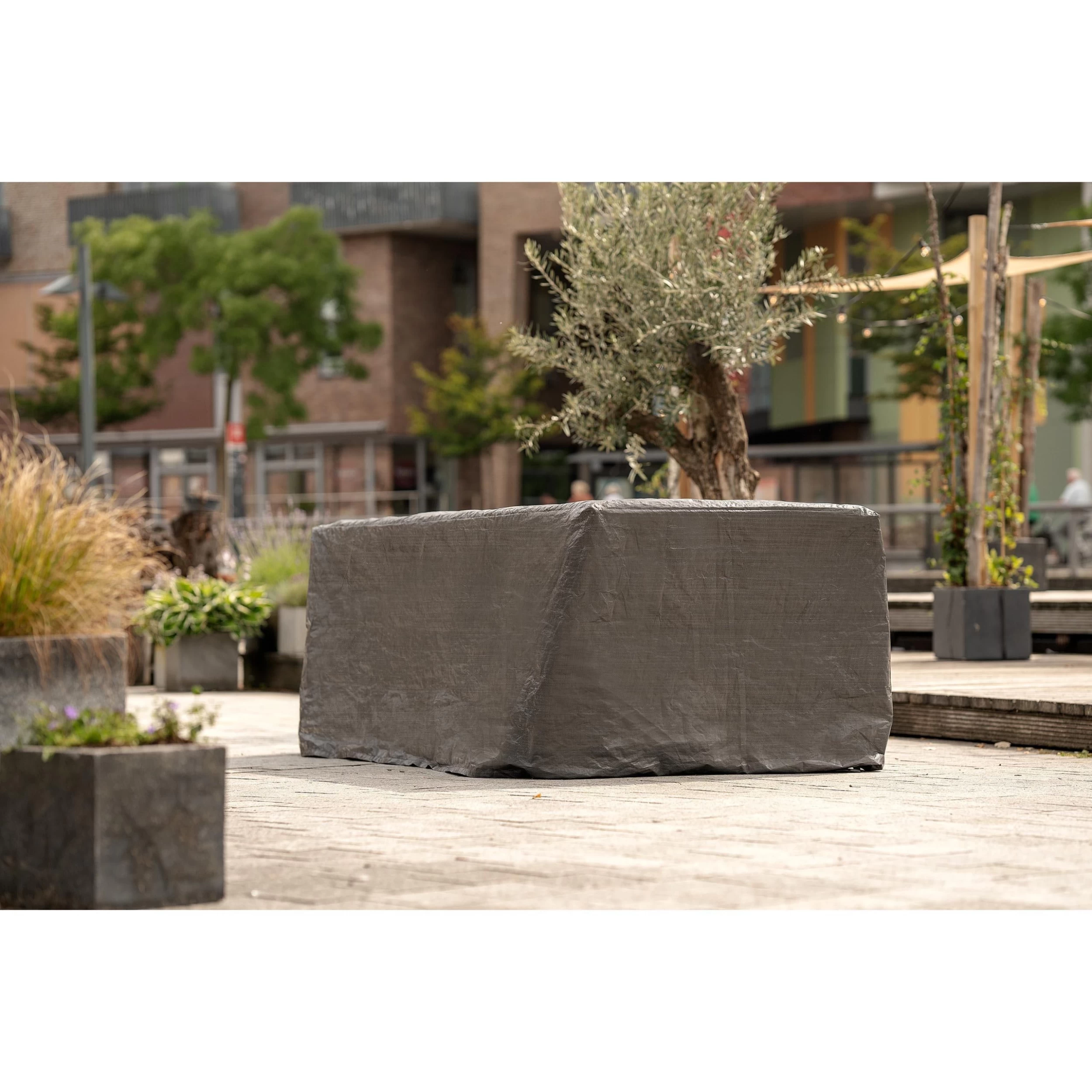 De Winza Outdoor Covers Premium tuinset hoes in de maat XL is geschikt voor tafels tot maximaal 280 centimeter met acht stoelen. De cover is gemaakt van duurzaam PP textiel in de kleur grijs. Dit stevige materiaal beschermd uw tuinset tegen zonlicht, regen, vorst, sneeuw en vuil. Met het klittenband kunt u de hoes aan uw tuinmeubels vastmaken. Bedek uw tuinmeubels alleen droog en berg kussens binnen op in verband met vochtschade.